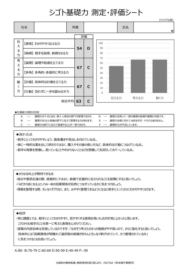 標準版 シゴト基礎力 評価・測定サービス(4人以上)