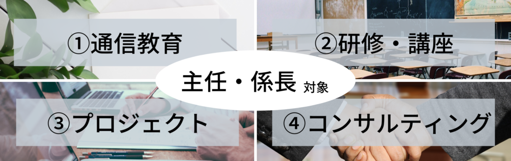 ①通信教育 ②研修・講座 ③プロジェクト ④コンサルティング