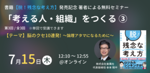 《通信》【5/28 (金)18:00】ついついやってしまう思考の落とし穴!「脱!残念な考え方」発刊記念イベント特別講座開催!ー正しい結論に至るためのロジカルシンキングー